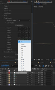 Target LayersのTargetに指定したレイヤーと数値が連動しており、キーフレームを打ったタイミングで③で設定したレイヤーへ移動する。